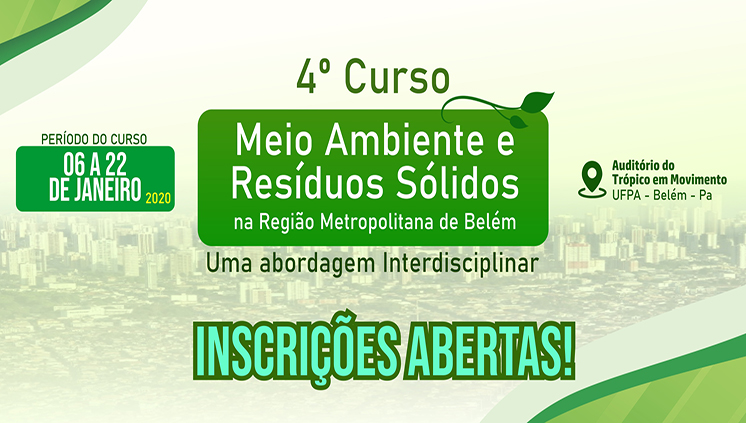 Estão abertas, até o dia 30 deste mês, as inscrições para o curso Meio Ambiente e Resíduos Sólidos na Região Metropolitana de Belém: uma abordagem interdisciplinar, que busca...