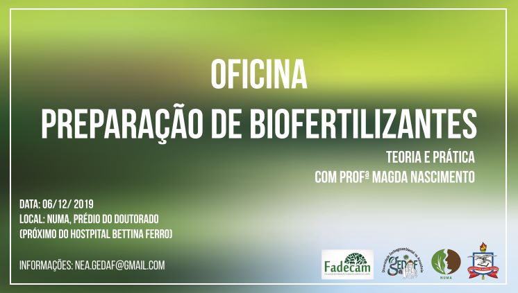 O Núcleo de Meio Ambiente (NUMA) vai promover, no dia 6 de dezembro, uma oficina de preparação de biofertilizantes. A atividade ocorrerá das 8h às 11h30, no prédio Sérgio Cardoso...