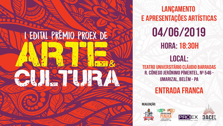 A Pró-Reitoria de Extensão da Universidade Federal do Pará (Proex/UFPA) lançará, nesta terça-feira, 4, por meio da Diretoria de Arte, Cultura, Esporte e Lazer (Dacel), o Edital do...